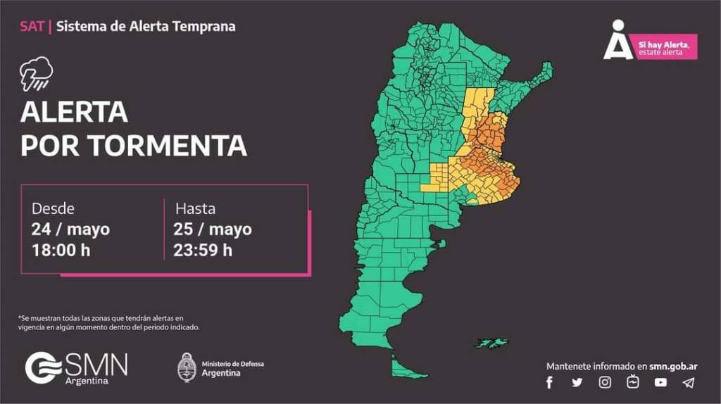 Más detalles de los alertas en www.smn.gob.ar/alertas