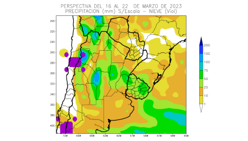 - La mayor parte del NOA, el noroeste del Paraguay, gran parte de la Región del Chaco, la mayor parte de la Mesopotamia, gran parte de Cuyo, la mayor parte de la Región Pampeana y el Uruguay observarán precipitaciones entre moderadas a muy abundantes (10 a 75 milímetros).