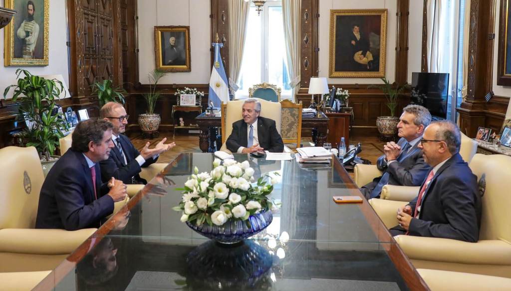 Este jueves, el presidente Alberto Fernández mantuvo una reunión en su despacho de Casa Rosada con el director ejecutivo de Bioceres, Federico Trucco, y el CEO y cofundador de Adecoagro, Mariano Bosch.