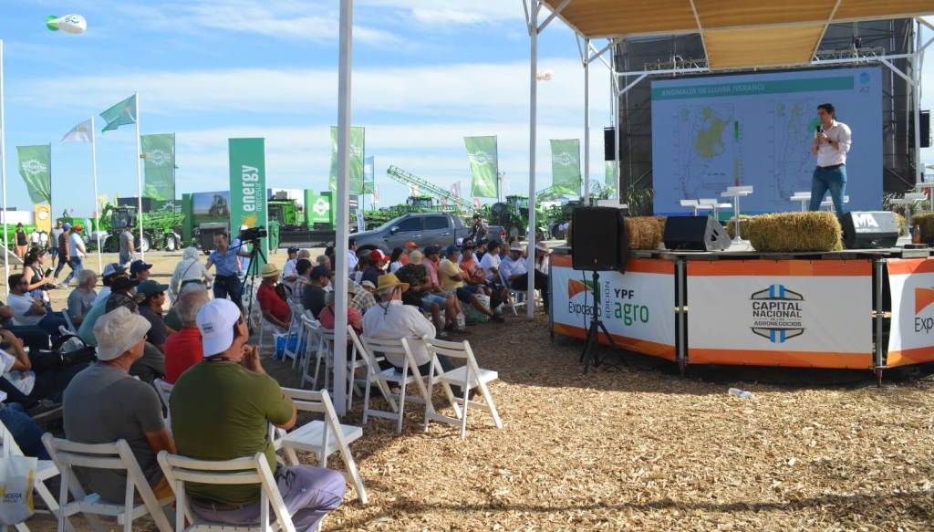 La cuestión climática no podía estar ausente en Expoagro, y el encargado de abordar el tema fue el meteorólogo Leonardo de Benedictis, con la charla “El clima protagonista en el cierre y apertura de campaña”, que brindó en el Anfiteatro AGRIPAY.