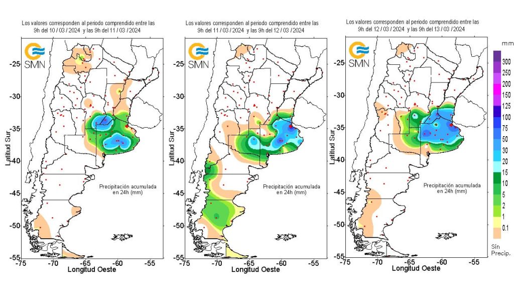 Allí, los acumulados llegaron hasta 200 milímetros. En cambio, en otras zonas como Córdoba, La Pampa y el oeste de Buenos Aires, los totales semanales fueron muy inferiores.
